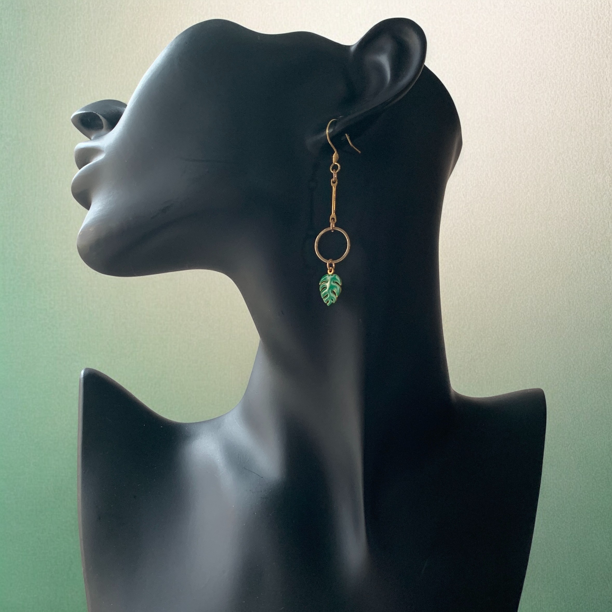 Les autres éléments sont en acier inoxydable, alliage de zinc et sequins émaillés verts feuille de monstera