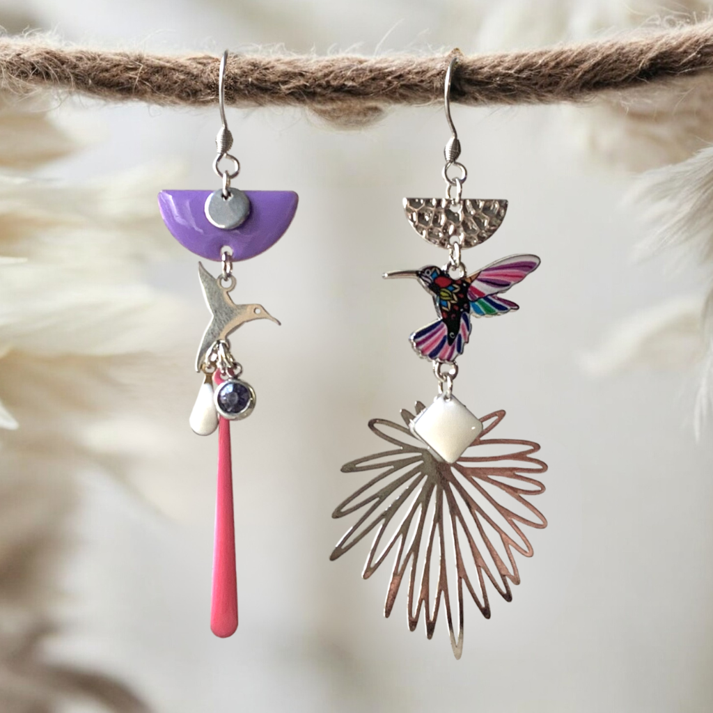 Un magnifique colibri multicolore pour une paire de boucles d'oreilles vraiment originale :)