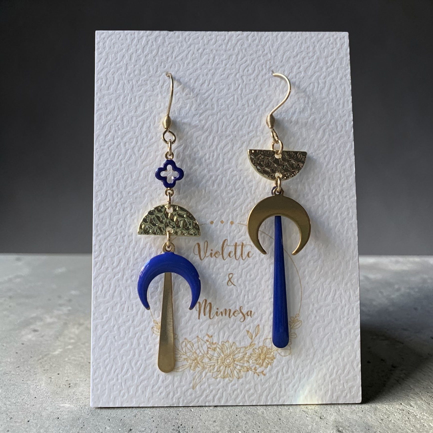 Je vous propose une alliance lumineuse du doré et du bleu roi qui met parfaitement en valeur la délicatesse des lunes