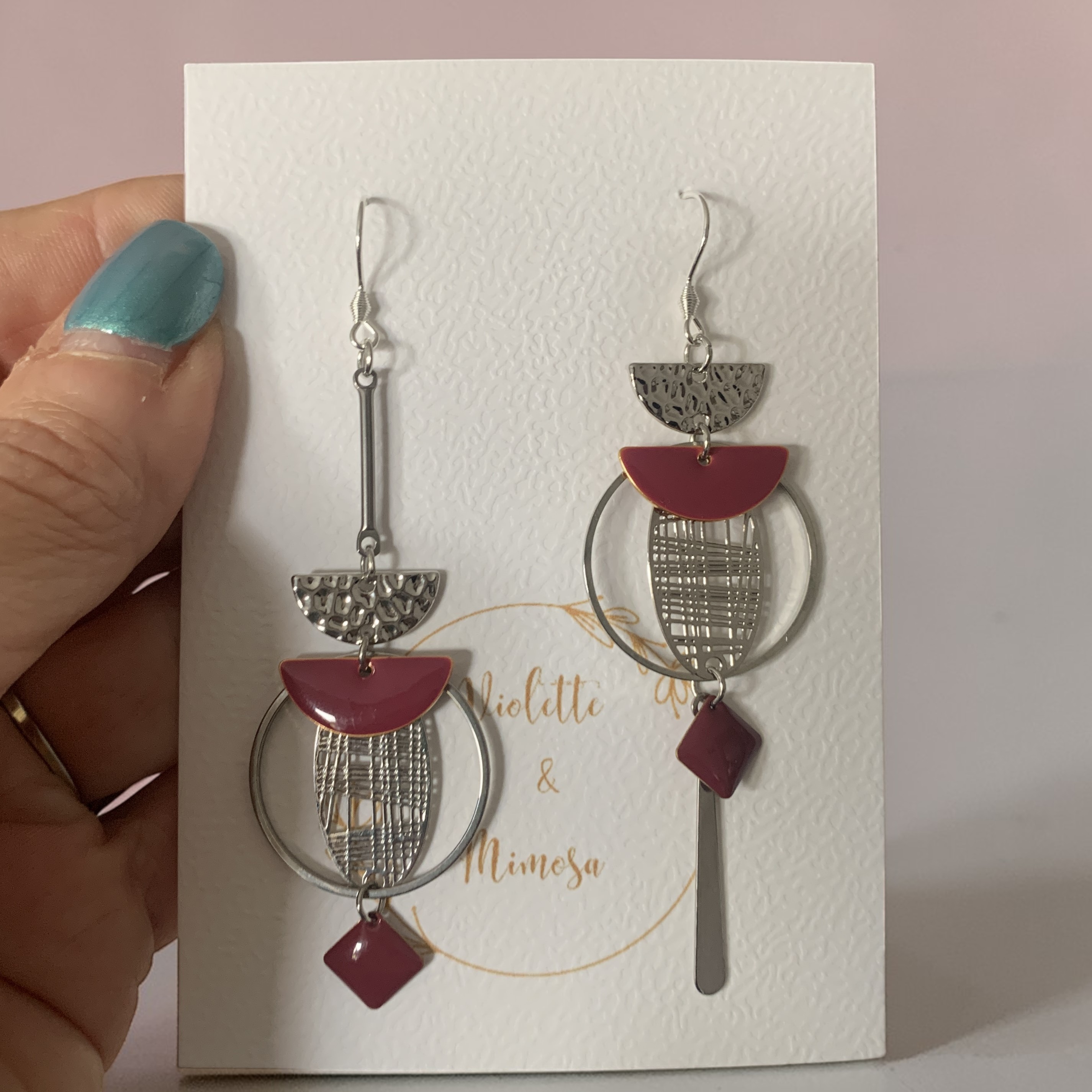 Les boucles d’oreilles seront livrées sur une petite cartonnette rigide et expédiées dans une enveloppe à bulles